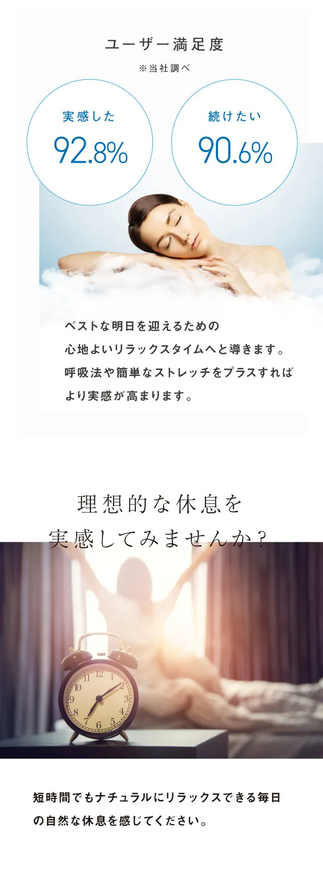 夜間の休息時間をより心地よいものへ導くことで、朝までぐっすり眠れたと感じやすい状態を支えます。
