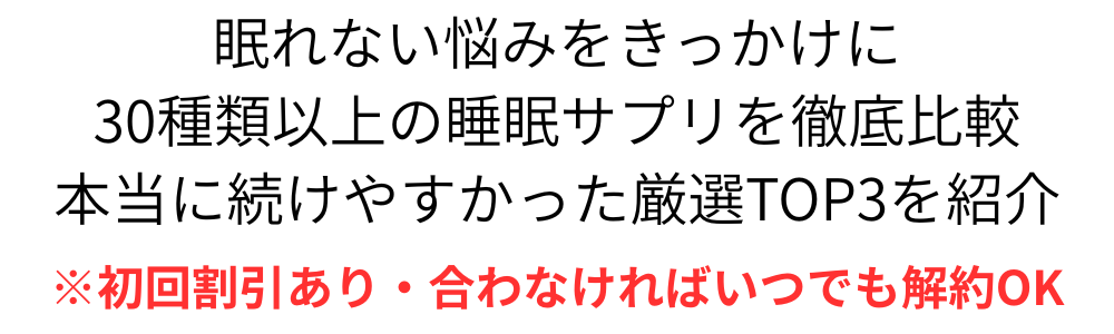 正直に言うと、ここに載せている3つにたどり着くまでに、私は30種類以上の睡眠サプリを試してきました。